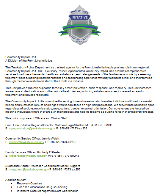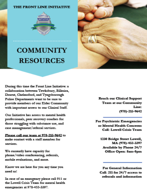 The Behavioral Health Unit is proud to introduce their team member CK along with therapy dog Brownie, both bring an amazingly impressive skill set to their roles. The Behavorial Health Unit is a mental health collaborative consisting of Tewksbury, Billerica, Dracut, Chelmsford and Tyngsborough Police Departments.